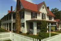 Located on a tranquil acre of landscaped grounds, the Hummingbird Inn, a unique Carpenter Gothic villa, offers accommodations in an early Victorian setting. Five comfortable air conditioned rooms are furnished with antiques, and combine an old-fashioned ambience with modern convenience. Architectural features include wrap-around verandas on the first and second floors, original pine floors of varying widths, and a wood-burning fireplace in the den. Common rooms for guest use include the 1780 den, the spacious parlor, and solarium. In season, the verandas afford comfortable seating upstairs and down, and lawn games are available. A large deck overlooks a wide trout stream, and the old red barn was once the town livery. A full country breakfast is served each morning. Breakfast specialities include fresh fruits in season, oven-baked honey-cinnamon french toast, omelets, breakfast casseroles, and homemade muffins and coffee cakes.